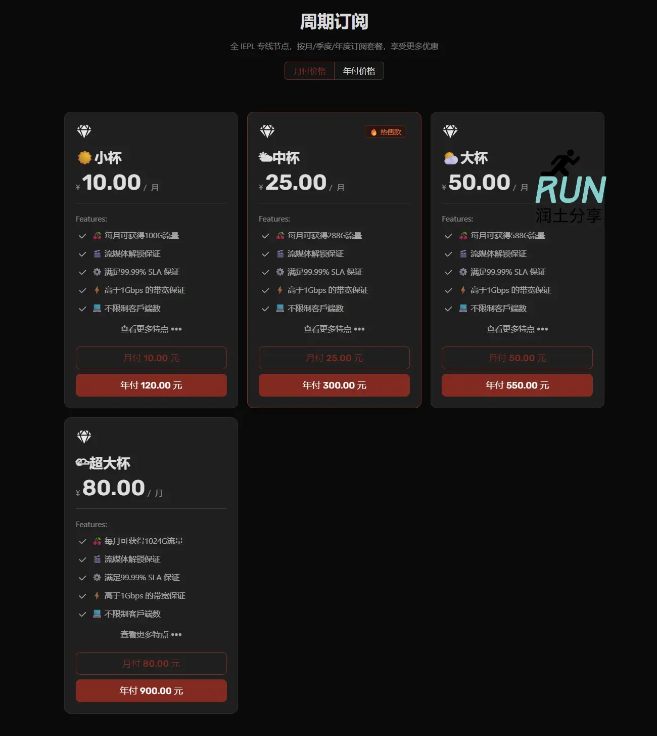 套餐支持月付,同时提供有不支持按量付费流量包。